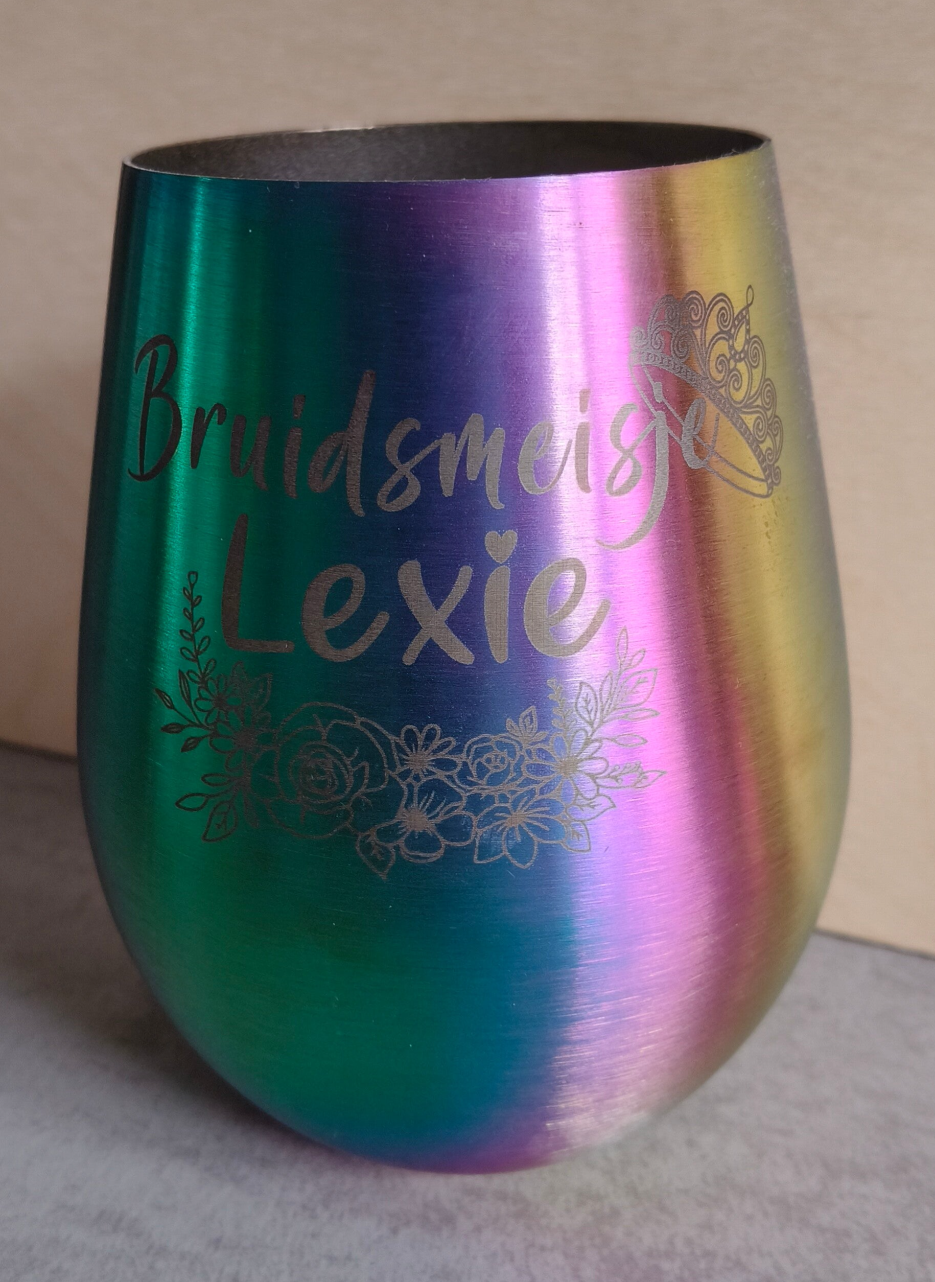Laat me weten welke namen ; datum / logo er op de metalen beker moet komen. Je mag me ook mailen op infi@studio-wen.nl voor extra uitleg of voor het versturen van een afbeelding.
